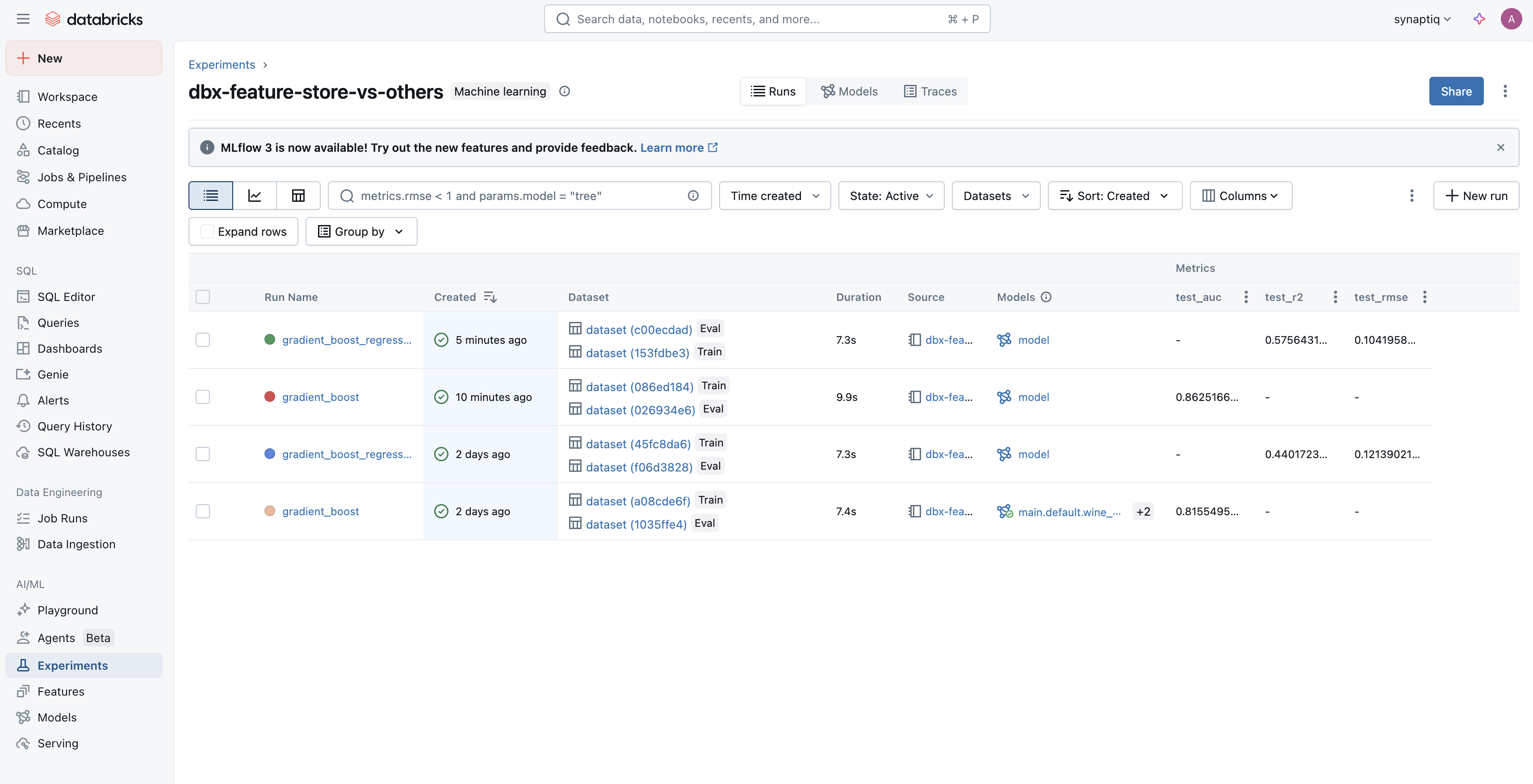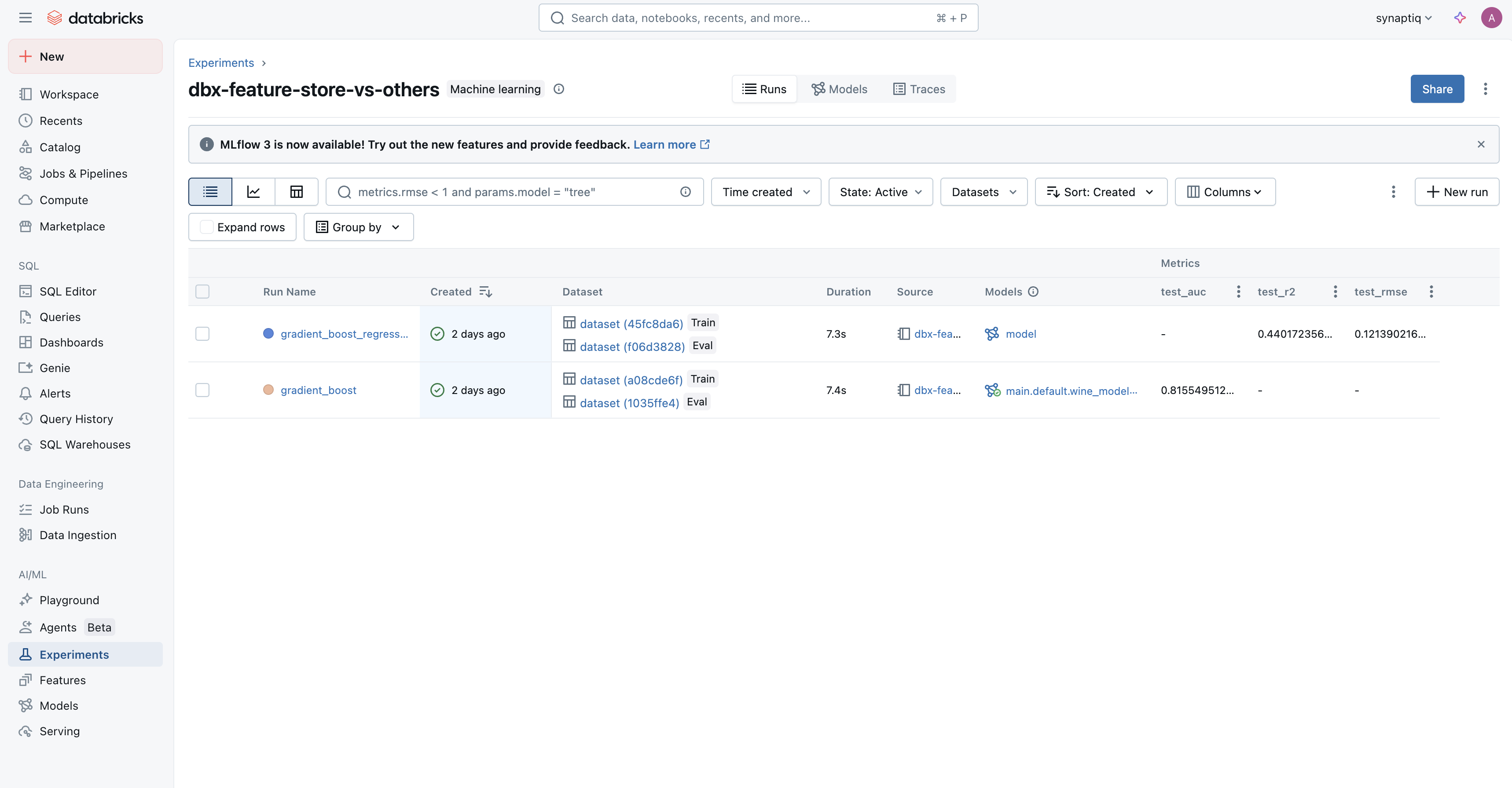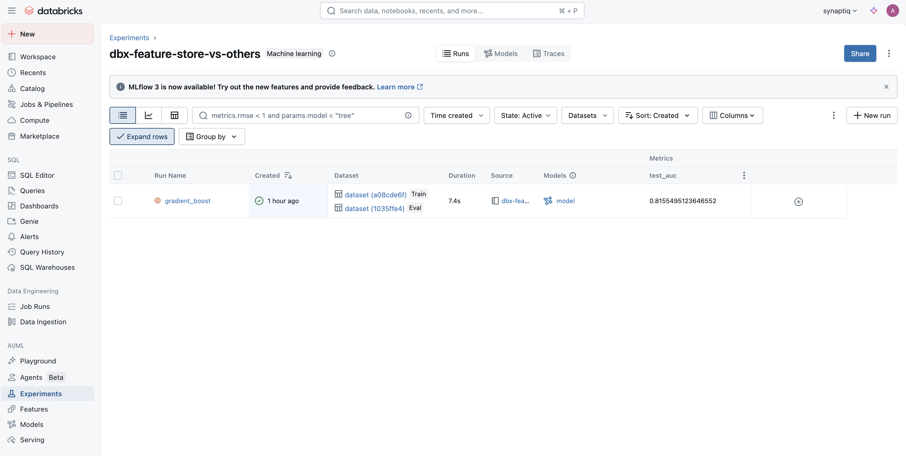 I’ve run this notebook a few times, and each time Databricks has logged the model version within our Feature Store’s lineage: